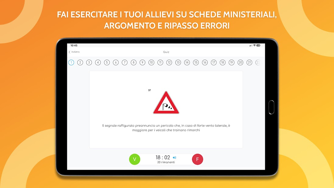 Uno strumento pensato per facilitare l’Insegnante della Scuola Guida, che potrà accedere alle statistiche dell’allievo direttamente dalla homepage, e per i ragazzi che preferiscono esercitarsi sulle schede ministeriali prima o dopo la lezione. Con il vantaggio di non avere le distrazioni e le notifiche dei propri telefoni.