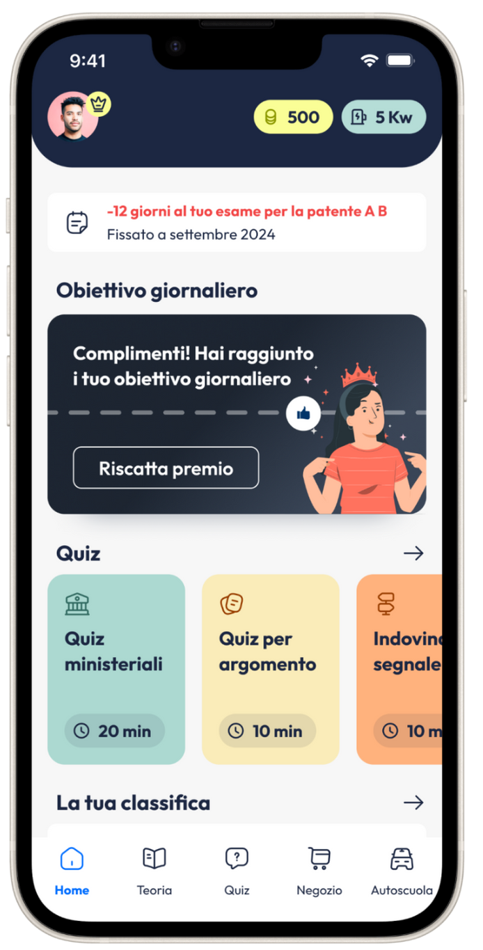 Scaricala dai link qui sotto e provala come fossi un allievo! Scarica ora l'App Quiz Patente.