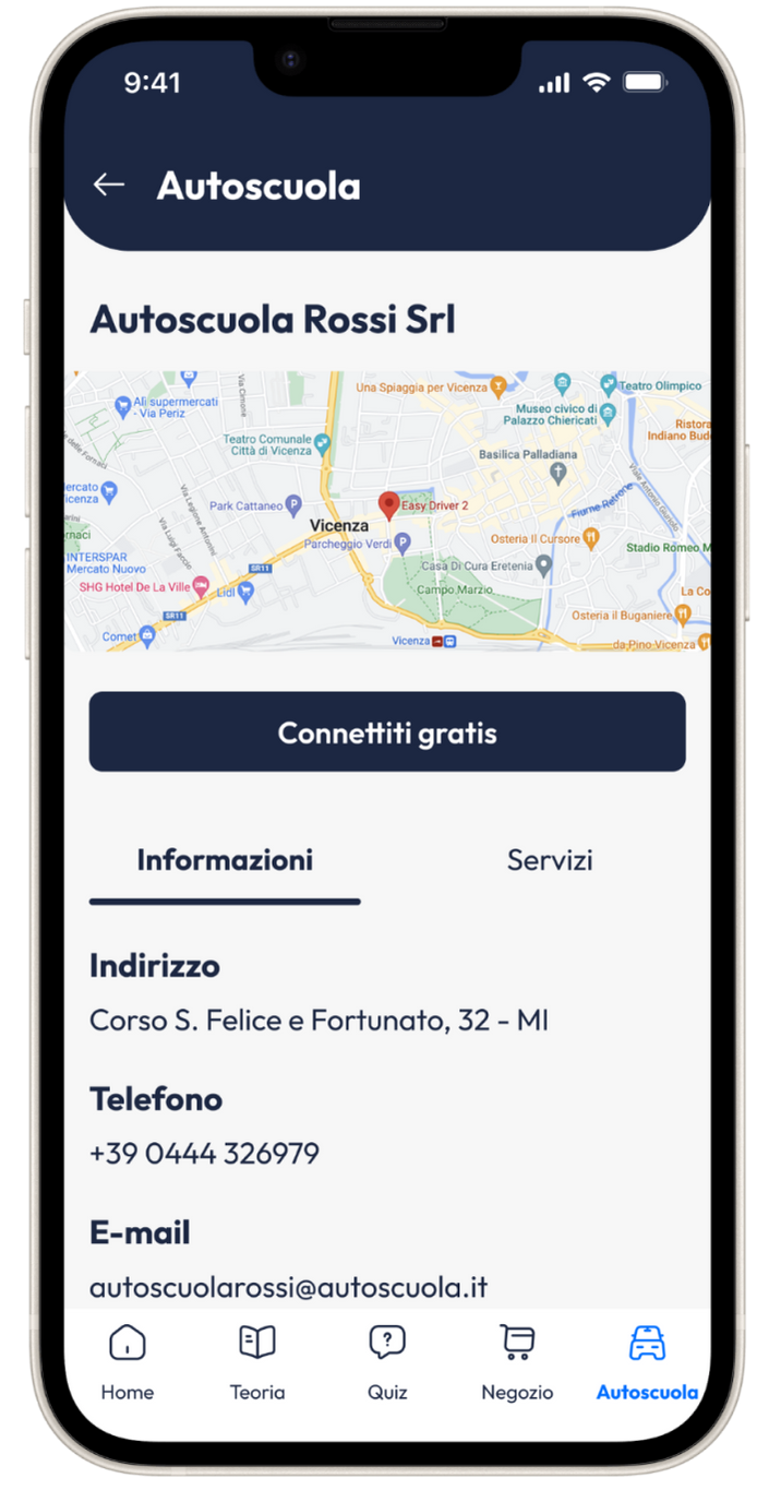 Potrai gestire la tua scuola a 360° con profili di utenza differenziati: segreteria, insegnante, istruttore, titolare, medico. Un mondo interconnesso per sfruttare al massimo le potenzialità del cloud e proporre una formazione di qualità superiore. Le Autoscuole non sono tutte uguali ed è importante distinguersi dalla concorrenza partendo dagli strumenti e presentandosi con soluzioni attuali e in continua evoluzione. Attestandosi così la miglior Autoscuola del mercato.
